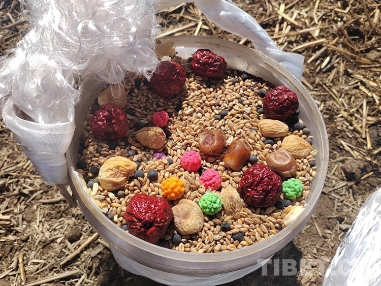圖為唐嘎村春耕儀式現(xiàn)場(chǎng),即將播撒的種子 攝影:次旦拉姆
