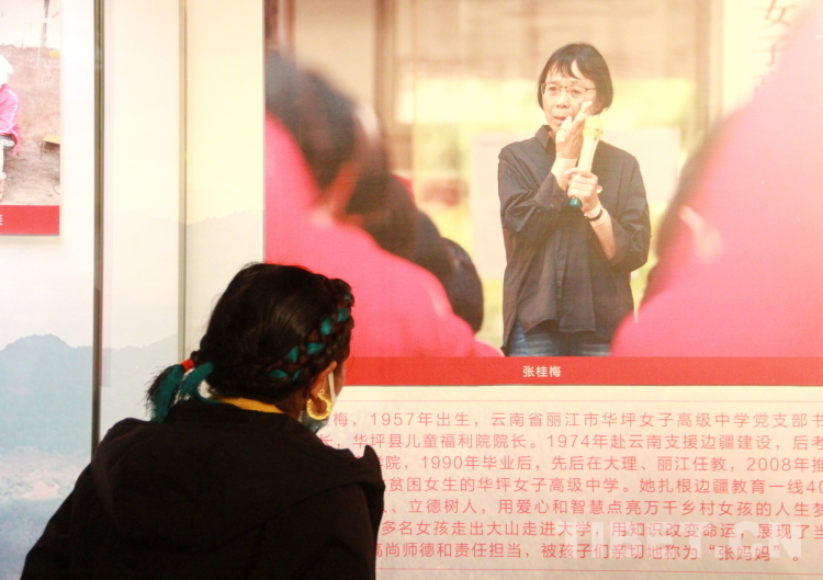 在眾多參觀展覽的人群中,有一位身著藏裝的西藏基層?jì)D聯(lián)干部,十分醒目,她總是笑意盈盈,用手機(jī)拍攝記錄著展覽的重點(diǎn),時(shí)不時(shí)與同伴分享心得。她叫索朗德吉,是來(lái)自西藏自治區(qū)林芝市工布江達(dá)縣江達(dá)鄉(xiāng)太昭村的婦聯(lián)主席,“通過(guò)觀看展覽,我系統(tǒng)了解到,百年來(lái),我們黨始終堅(jiān)持把實(shí)現(xiàn)婦女解放和發(fā)展、實(shí)現(xiàn)男女平等寫在自己奮斗的旗幟上?,F(xiàn)在的西藏,男女平等,婦女也能當(dāng)領(lǐng)導(dǎo),在工作崗位上展現(xiàn)著‘婦女能頂半邊天’的巾幗力量。這事兒如果放到舊西藏,那是想都不敢想的?!彼骼实录f(shuō),“在中國(guó)共產(chǎn)黨的領(lǐng)導(dǎo)下,我們村早已發(fā)展成為天上有航線,地面有鐵路,生活富裕的小康村,聽黨話、跟黨走是太昭人不變的信念,回去后我要把聽到的、看到的、學(xué)到的,不光講給村里人,更要講給縣里人,激發(fā)出她們的民族自豪感,共同澆灌民族團(tuán)結(jié)的參天大樹?!?/p>