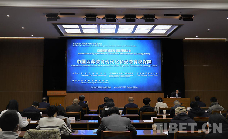 中國西藏網(wǎng)訊 3月28日,第七屆北京國際藏學研討會前期分會—西藏教育發(fā)展專題國際研討會在北京舉行。會議以“中國西藏教育現(xiàn)代化和受教育權保障”為主題,由中國人權研究會、中國西藏文化保護與發(fā)展協(xié)會、中國藏學研究中心共同主辦,中國藏學研究中心承辦。研討會由中國藏學研究中心總干事鄭堆主持,國內(nèi)外有關專家學者60余人以線上線下相結合的方式參會。中國人權研究會副秘書長王琰文,中國西藏文化保護與發(fā)展協(xié)會副秘書長林建,中國藏學研究中心副總干事廉湘民、李德成出席。