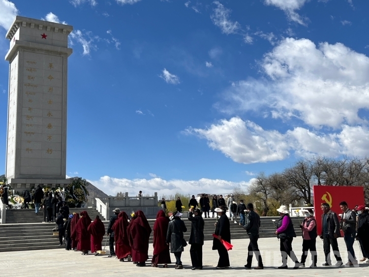 圖為社會各界人士向革命先烈敬獻鮮花 攝影:德吉卓瑪