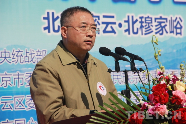 圖為北京市委統(tǒng)戰(zhàn)部副部長、北京社院黨組書記、常務(wù)副院長呂仕杰在“同心造林·共鑄健康”“同心·共鑄中國心”2023年同心林植樹和義診活動啟動儀式上致辭 攝影:劉莉
