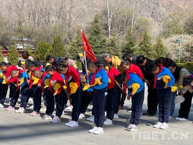 中國西藏網(wǎng)訊 4月12日上午,由西藏煙草駐日喀則市昂仁縣第十一批駐村工作隊、江蘇商會黨委、冬日暖陽愛心公益組織承辦的“領略非凡世界、放飛多彩夢想”公益活動工作組帶領來自西藏日喀則市昂仁縣多白鄉(xiāng)的30名小學生來到位于拉薩市西郊的拉薩烈士陵園緬懷革命先烈。
