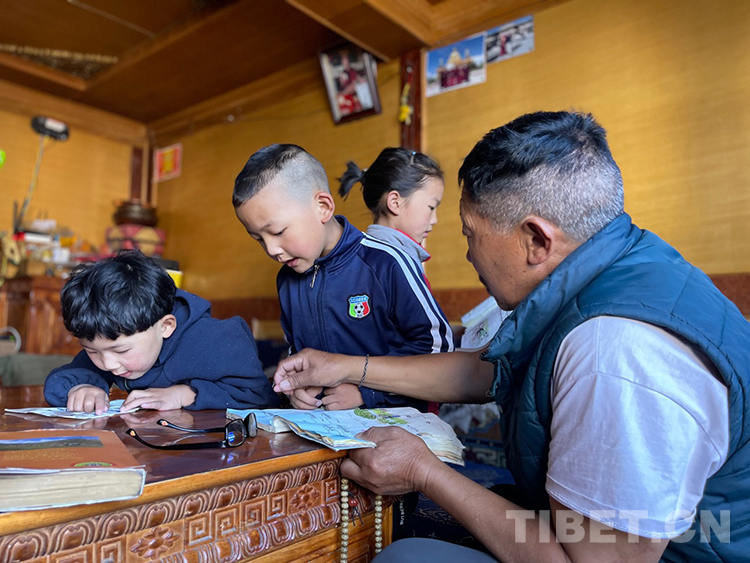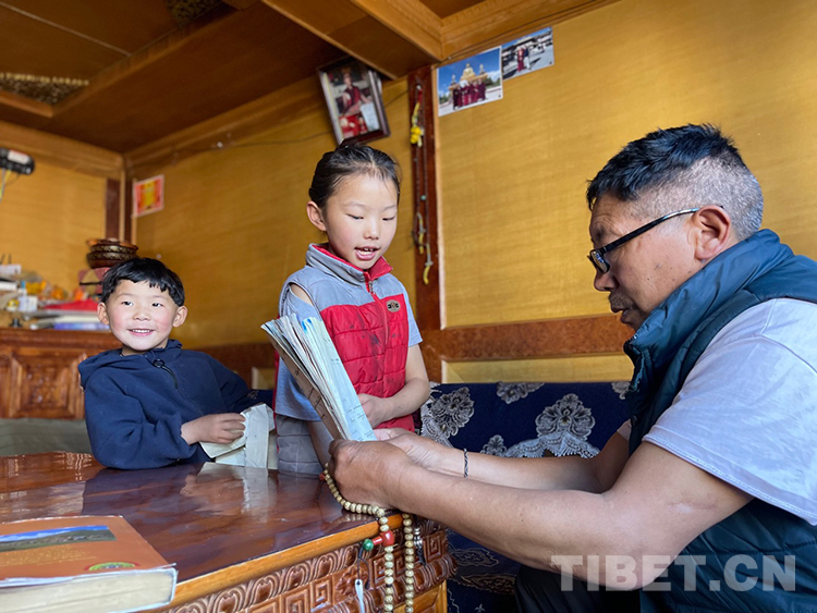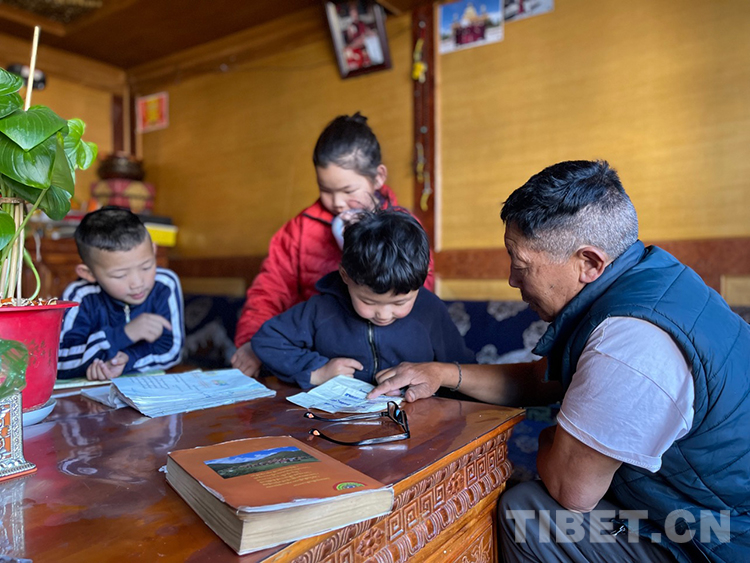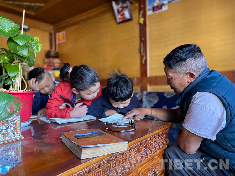 阿噶大爺自己粗通藏文,能督促和檢查藏文作業(yè),孩子們則非常享受爺爺驗(yàn)收他們的學(xué)習(xí)成果,每次都爭先恐后地請爺爺聽自己的發(fā)音和背誦是否準(zhǔn)確。平時(shí)老師還會(huì)安排上網(wǎng)課,因此不會(huì)耽誤他們的學(xué)業(yè)。