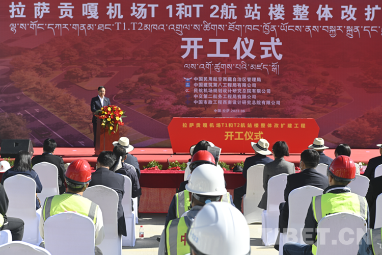中國(guó)西藏網(wǎng)訊 6月2日,民航西藏區(qū)局舉行拉薩貢嘎機(jī)場(chǎng)T1和T2航站樓整體改擴(kuò)建工程開(kāi)工儀式。