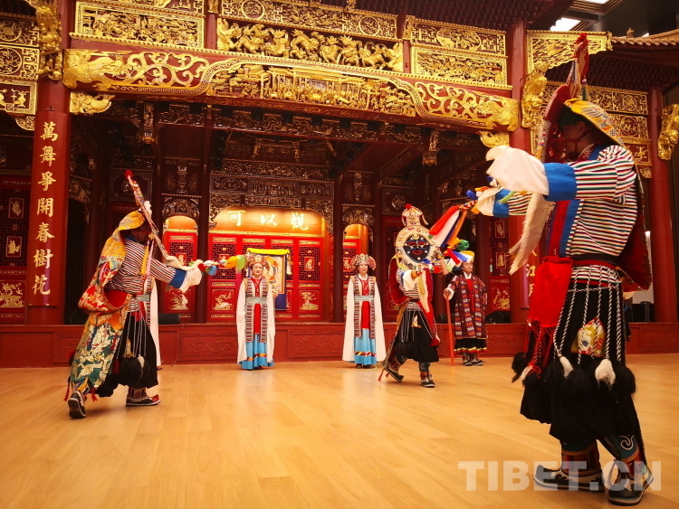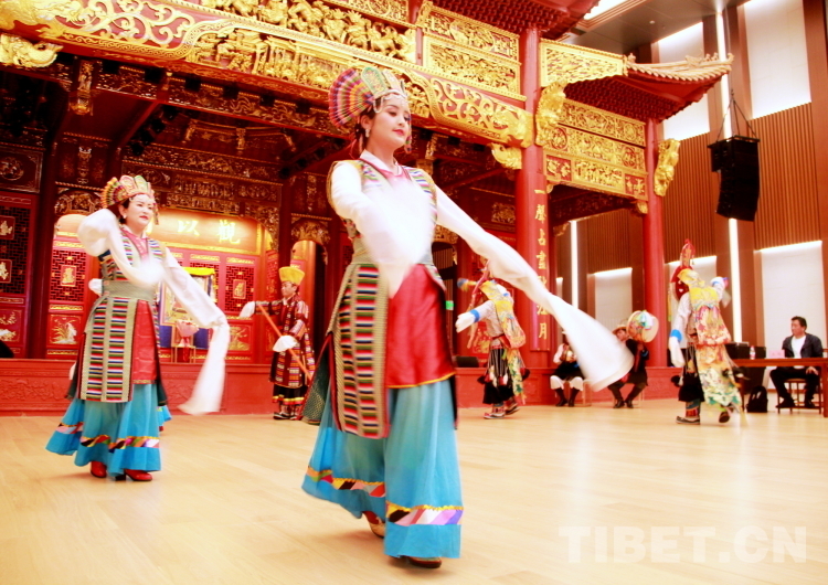 西藏藏劇團(tuán)副團(tuán)長米瑪普赤就藏戲的起源、藏戲的特點(diǎn)、藏戲的流派等進(jìn)行了詳細(xì)介紹。伴隨著雄渾響亮的鼓鈸聲,西藏自治區(qū)拉薩市城關(guān)區(qū)娘熱民間藝術(shù)團(tuán)的藝術(shù)家們表演了藏戲開場《溫巴頓》、藏戲唱腔《朗薩雯波》之貢桑德慶唱腔、拉薩囊瑪《吉白尼瑪》、嘎爾《郎卓》等經(jīng)典片段。精美的服飾、鏗鏘的唱腔、緊湊的故事情節(jié)……贏得了與會嘉賓的連連贊嘆與陣陣掌聲。