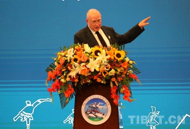 圖為大衛(wèi)·布萊爾在第五屆中國西藏旅游文化國際博覽會主旨論壇發(fā)表演講 攝影:王佳豪