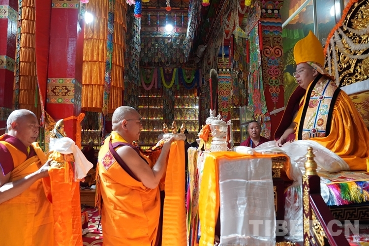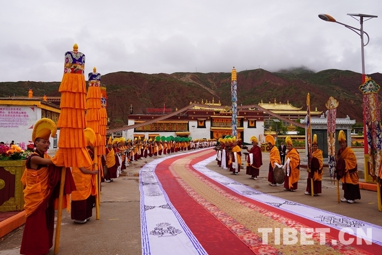 圖為寺院僧眾代表向班禪敬獻(xiàn)曼扎 攝影:王淑