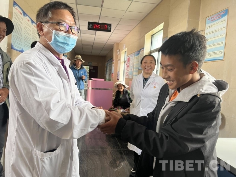 圖為桑丁跟張醫(yī)生握手表達(dá)感謝 攝影:德吉卓瑪