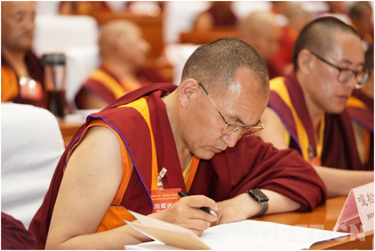 在安排部署下一步重點(diǎn)工作時(shí),班禪表示,推動(dòng)自我變革,開展教義教規(guī)闡釋。發(fā)揮藏傳佛教界人士在推進(jìn)中國化中的主體作用,推動(dòng)沿著中國化方向健康傳承,引導(dǎo)藏傳佛教界人士切實(shí)增強(qiáng)自我變革的思想和行動(dòng)自覺,以社會(huì)主義核心價(jià)值觀為引領(lǐng),在保持基本信仰、核心教義的前提下,促進(jìn)教義教規(guī)、管理制度、禮儀習(xí)俗、行為規(guī)范等方面逐步形成中國特色。實(shí)施藏傳佛教教義教規(guī)闡釋工程。引導(dǎo)藏傳佛教界對教義教規(guī)、藏傳佛教經(jīng)典選優(yōu)擇重、去粗取精、推陳出新,作出與中國國情、中華文化、中國特色社會(huì)主義相適應(yīng)的通俗易懂、與時(shí)俱進(jìn)地闡釋。引導(dǎo)藏傳佛教界人士在闡釋經(jīng)典、講經(jīng)說法、日常生活中學(xué)習(xí)使用國家通用語言文字,開展經(jīng)典翻譯、選編、注釋,挖掘教義思想中積極因素。爭做精進(jìn)修學(xué)、推進(jìn)藏傳佛教健康傳承的好僧尼,爭做守法遵規(guī)、弘揚(yáng)濟(jì)世利民優(yōu)良傳統(tǒng)的好僧尼,爭做立場堅(jiān)定、堅(jiān)決維護(hù)祖國統(tǒng)一和民族團(tuán)結(jié)的好僧尼。