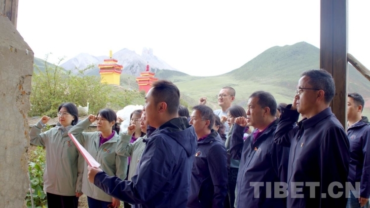 圖為“同心·共鑄中國(guó)心”昌都行第十一團(tuán)在洛隆縣重于泰山烈士紀(jì)念碑前重溫入黨誓詞,開(kāi)展主題黨日活動(dòng)。(洛隆融媒提供)