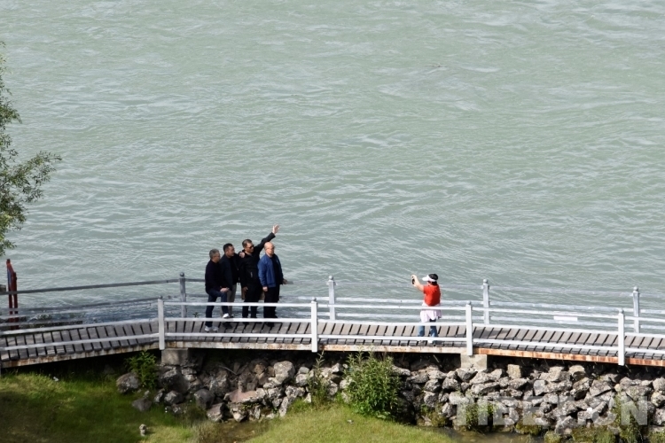 圖為7月22日,游客在雅尼國(guó)家濕地公園留影 攝影:次旦拉姆