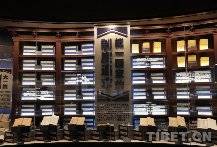 圖為鑄牢中華民族共同體意識(shí)文物古籍展第一單元“大一統(tǒng)”展廳 攝影:張萌萌