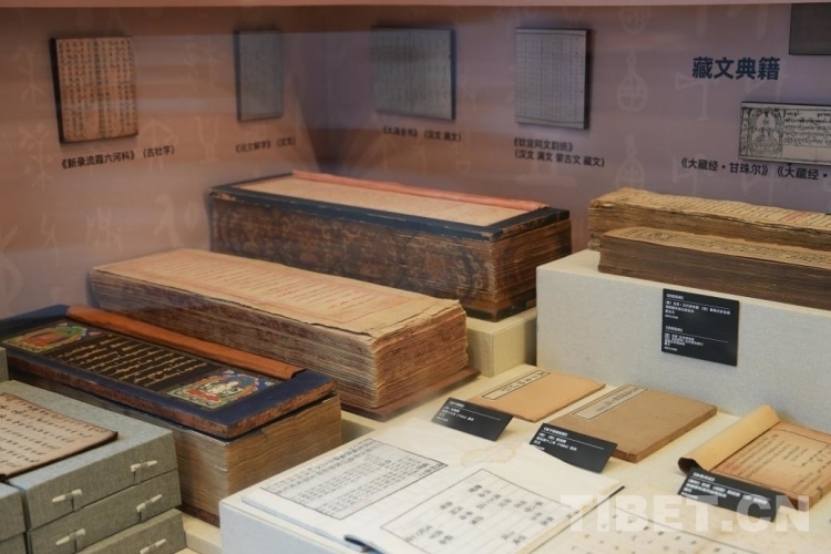 圖為展出的《大藏經(jīng)·甘珠爾》與《四部醫(yī)典》等藏文古籍 攝影:張萌萌