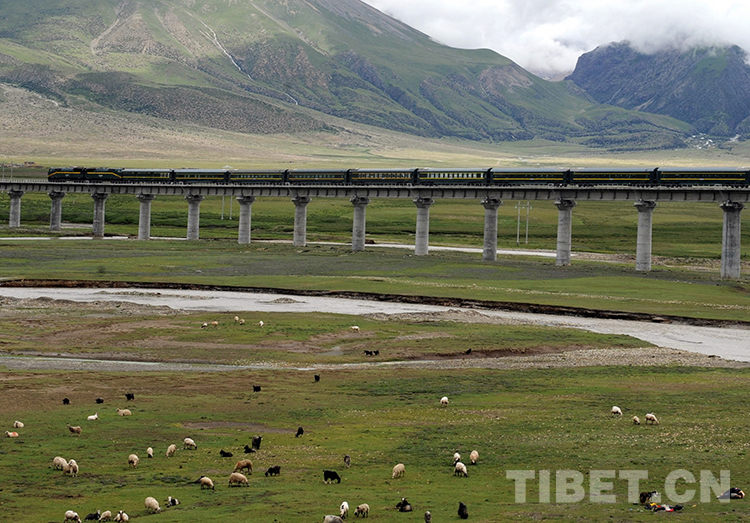 奔馳在藏北高原高架橋上的“天路”列車(chē)(唐召明2016年5月4日攝)