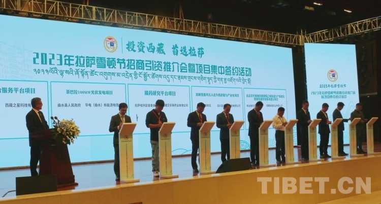 中國(guó)西藏網(wǎng)訊 8月17日,西藏自治區(qū)拉薩市2023年雪頓節(jié)招商引資推介會(huì)暨項(xiàng)目集中簽約儀式(以下簡(jiǎn)稱:會(huì)議)在拉薩舉行。共達(dá)成簽約項(xiàng)目32個(gè),總投資130.56億元。