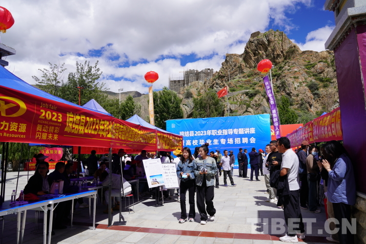 當(dāng)天,主辦方在瓊結(jié)青瓦達孜廣場舉辦現(xiàn)場招聘會,數(shù)十名瓊結(jié)籍高校畢業(yè)生在了解用工情況、發(fā)展前景和福利待遇后,當(dāng)場簽訂了區(qū)外就業(yè)意向。