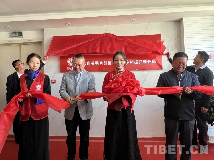 圖為相關領導為脫貧地區(qū)農副產品網絡銷售平臺(簡稱:832平臺)西藏區(qū)域服務中心揭牌剪彩 攝影:德吉卓瑪
