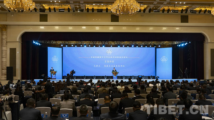 圖為首屆西藏鑄牢中華民族共同體意識(shí)論壇現(xiàn)場(chǎng),西藏自治區(qū)黨委書(shū)記王君正出席并作主旨演講。 攝影:趙振宇