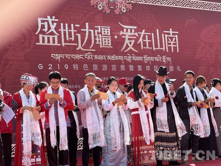 參加此次集體婚禮的新人中有來(lái)自北京、廣西、長(zhǎng)沙、重慶等區(qū)外的游客,也有來(lái)自G219沿線縣(區(qū))的山南當(dāng)?shù)厍閭H,有漢族、藏族、彝族、苗族、回族等不同民族通婚的情侶、夫妻,他們年紀(jì)有別、身份不同、職業(yè)各異,卻都選擇來(lái)到山南奔赴這場(chǎng)浪漫之旅。在接下來(lái)的六天,他們將陸續(xù)前往山南市加查縣、隆子縣、措美縣、洛扎縣及浪卡子縣,在欣賞大美邊疆風(fēng)光、領(lǐng)略特色民族風(fēng)情的同時(shí),感受中華民族一家親的團(tuán)結(jié)精神。