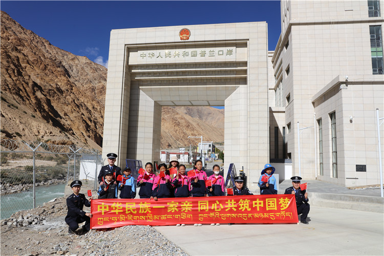 圖為參加活動(dòng)的民警與學(xué)生在中尼(中國(guó)與尼泊爾)9號(hào)界樁,開展“傳承紅色基因 弘揚(yáng)烈士精神”主題宣傳教育活動(dòng)