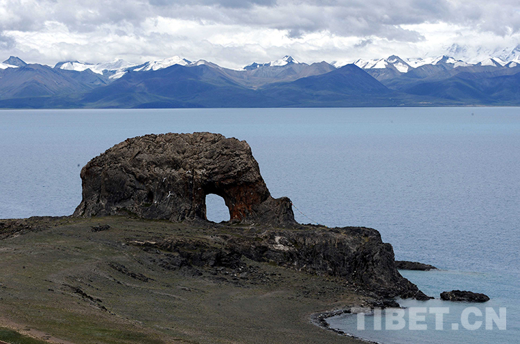 位于班戈縣納木錯北岸的“圣象天門”景觀。遠(yuǎn)處是綿延的念青唐古拉山脈(唐召明2012年8月4日攝)