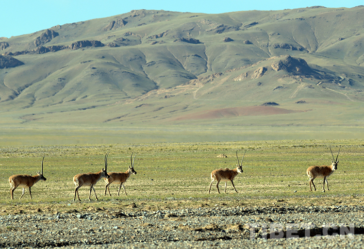 在羌塘國家級自然保護(hù)區(qū)悠閑漫步的國家一級保護(hù)動物藏羚羊(唐召明2019年9月20日攝)