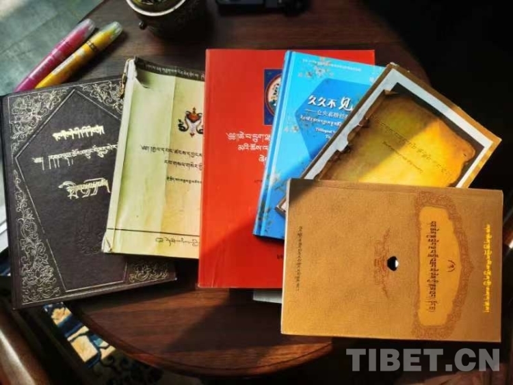 圖為巴桑羅布先生研讀的部分原始藏文材料 攝影:王淑
