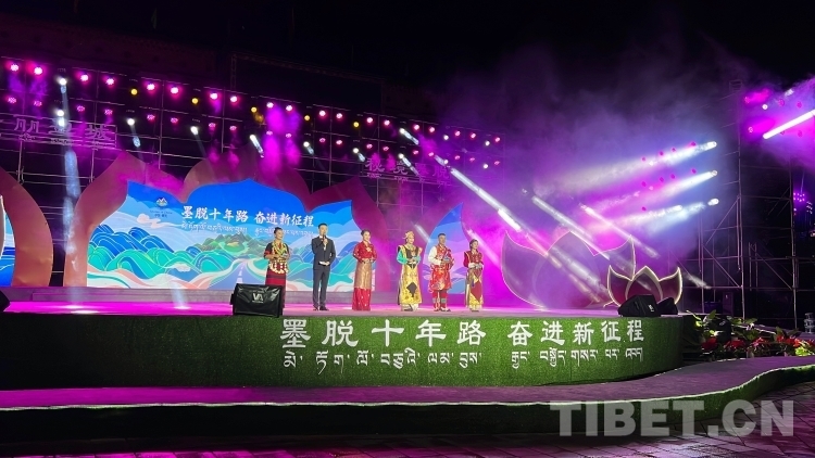 11月4日,墨脫通車十周年系列活動之“墨脫十年路 奮進新征程”文藝演出在墨脫縣好日子蓮花廣場舉行。來自墨脫縣各行各業(yè)的代表、當(dāng)?shù)鼐用褚约皝碜匀珖鞯氐挠慰妄R聚這里,共同為墨脫通車十周年這一歷史性時刻慶祝。