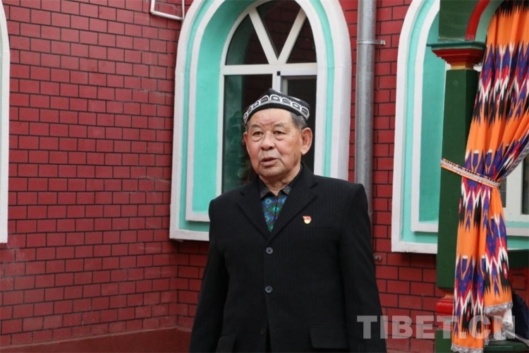 圖為沙勒克江·依明老人站在自家小院里 攝影:王妍丹