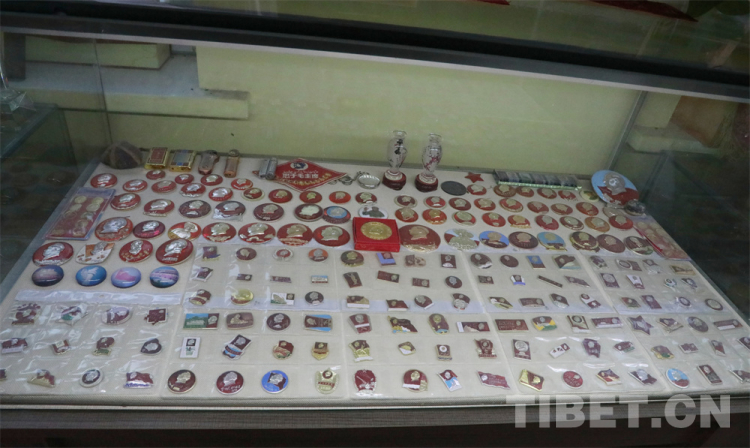 “我是以前年代過(guò)來(lái)的人,很崇拜毛主席。我一直有收藏毛主席相關(guān)紀(jì)念品的習(xí)慣。他的著作、照片、畫(huà)冊(cè)、紀(jì)念章……這些東西我看見(jiàn)了就會(huì)買(mǎi)回來(lái)。我還年輕的時(shí)候,在書(shū)店看到了毛主席的著作,不管多少錢(qián)都會(huì)買(mǎi)下來(lái),然后把這些書(shū)送到二三十公里外的人民公社,讓更多人去讀毛主席的書(shū)。”沙勒克江·依明在展品柜前回憶道。