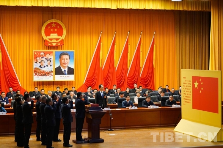 圖為拉薩市第十二屆人民代表大會第四次會議舉行的憲法宣誓儀式 攝影:趙振宇