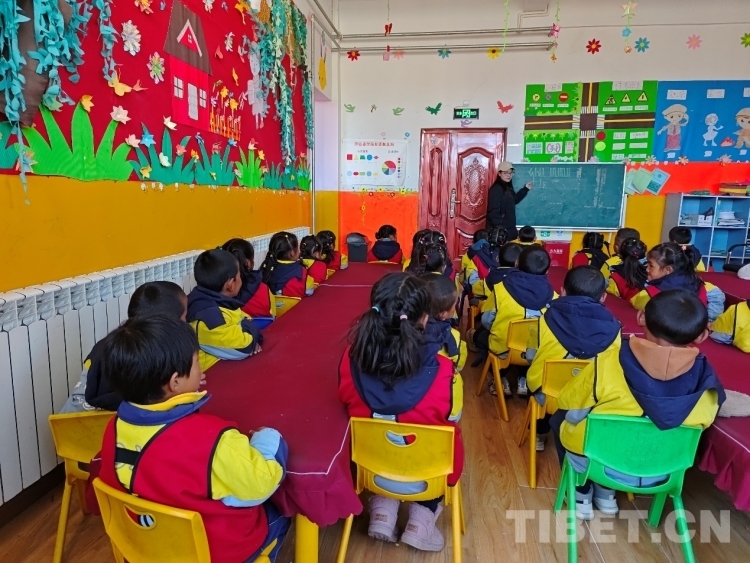 圖為雄麥鄉(xiāng)小學(xué)幼兒園學(xué)生在上藏文課 攝影:頓珠