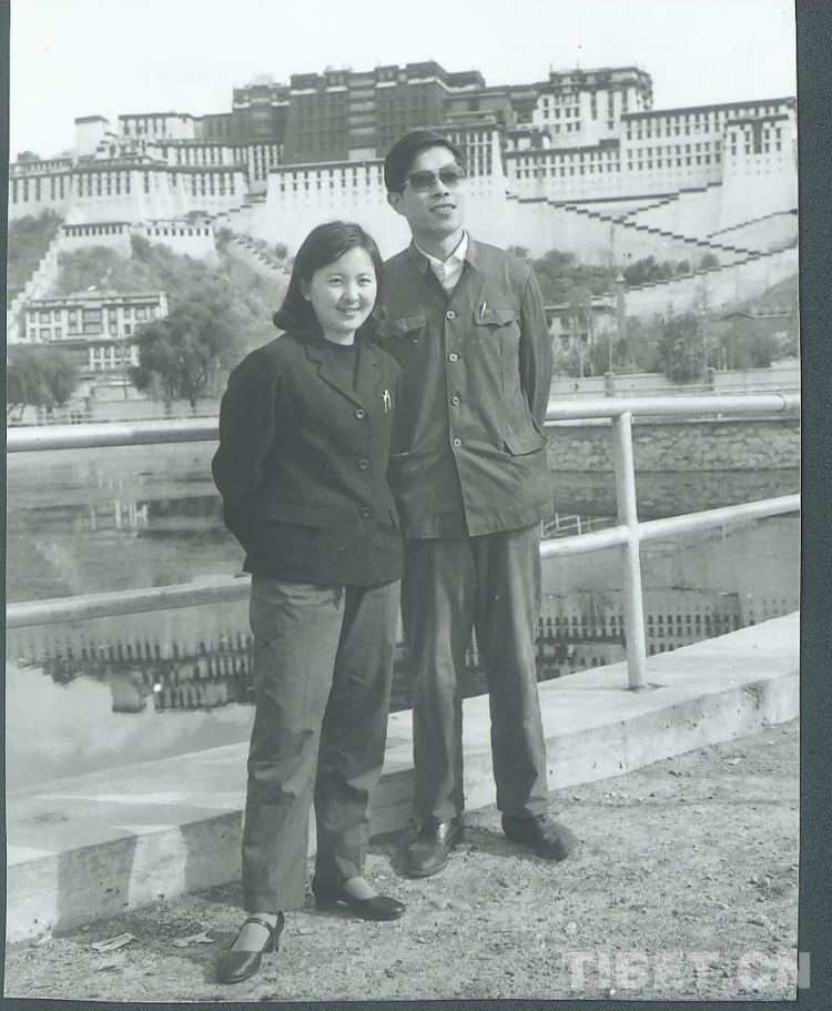 圖為20世紀(jì)70年代末,朱曉明、盧小飛夫婦在拉薩布達(dá)拉宮前的合影