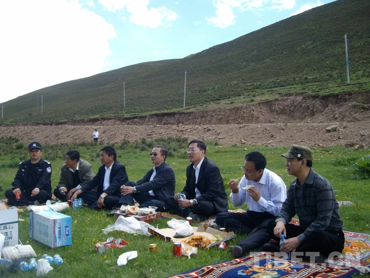 圖為2009年7月,朱曉明(右三)帶隊(duì)赴昌都調(diào)研路餐