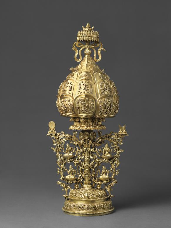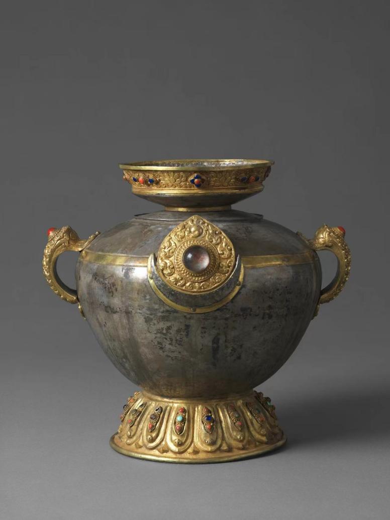 圖為公元18世紀(jì)鎏金嵌寶石雙耳甕