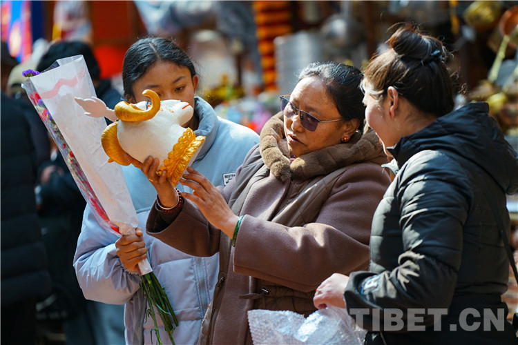 圖為正在認真選購“隆果”(漢語意為吉祥羊頭)的拉薩市民 攝影:趙振宇