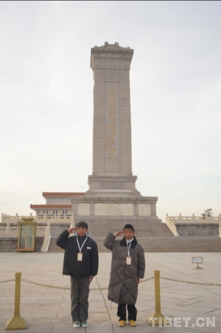 中國(guó)西藏網(wǎng)訊 “革命先輩們?yōu)榱俗屛覀冞^(guò)上好的生活,用自己的生命守護(hù)了我們,我要向他們敬禮!”來(lái)自西藏自治區(qū)日喀則市邊境縣學(xué)生赴北京參觀研學(xué)活動(dòng)的22名中學(xué)生中的扎西平措鄭重其事地向人民英雄紀(jì)念碑敬禮。