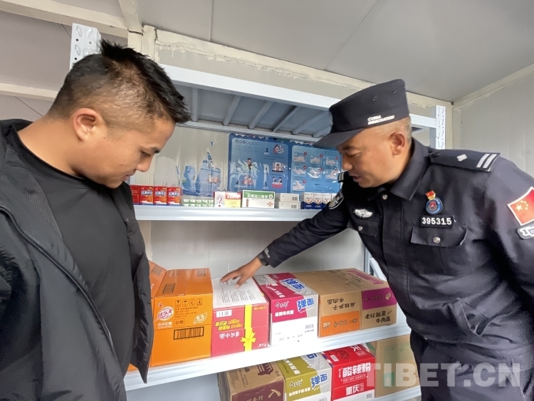 圖為扎西平措(右)和同事整理紅石榴驛站物資
