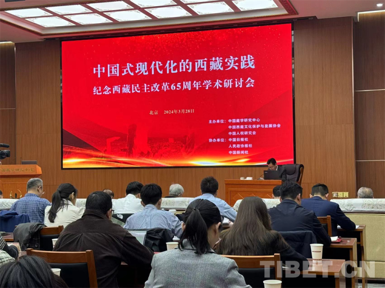 中國西藏網(wǎng)訊 3月28日,紀(jì)念西藏民主改革65周年學(xué)術(shù)研討會在北京舉行。此次研討會由中國藏學(xué)研究中心、中國西藏文化保護(hù)與發(fā)展協(xié)會、中國人權(quán)研究會共同主辦,中國日報(bào)社、人民政協(xié)報(bào)社、中國新聞社協(xié)辦。會議以“中國式現(xiàn)代化的西藏實(shí)踐”為主題,旨在進(jìn)一步貫徹落實(shí)習(xí)近平總書記關(guān)于西藏工作的重要論述和新時代黨的治藏方略,深入探討西藏民主改革的歷史必然和啟示,總結(jié)西藏高質(zhì)量發(fā)展的成效與經(jīng)驗(yàn),共議新時代西藏故事的國際化傳播。國內(nèi)外有關(guān)專家學(xué)者80余人參會。