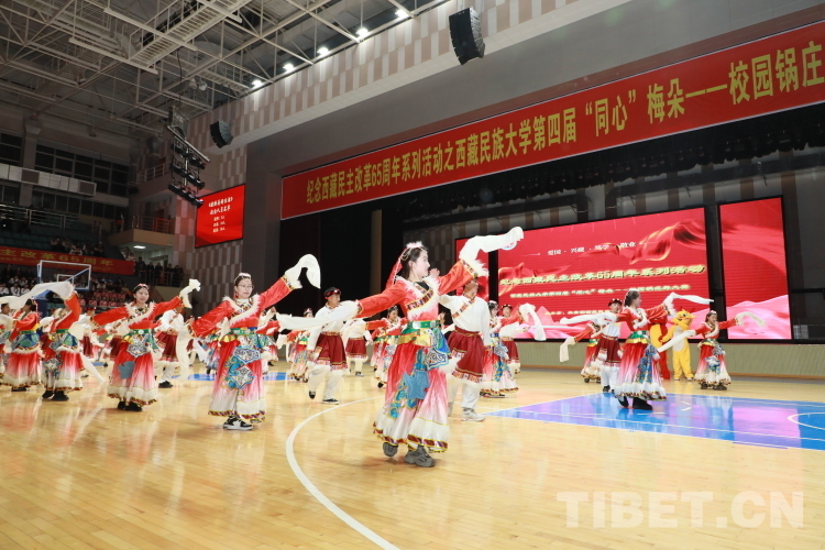 圖為西藏民族大學舉辦的第四屆“同心”梅朵鍋莊舞大賽現(xiàn)場