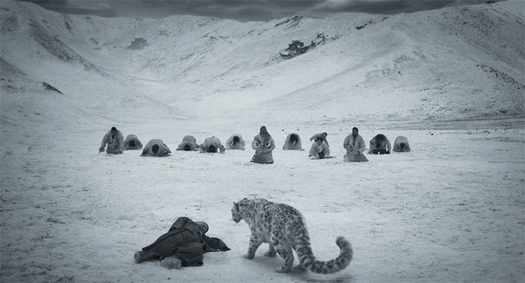主角金巴為什么同意將入侵家園的雪豹放歸雪山大地?比起自己,在與親人、法理、財產(chǎn)、理賠等一系列沖突中,他選擇了隱忍或者屈服,哪怕之前犯糊涂魯莽行事。這是一眾善良牧人與生俱來的天性,更是人類文明的體現(xiàn)。也許,正因為如此,他才成為主角。