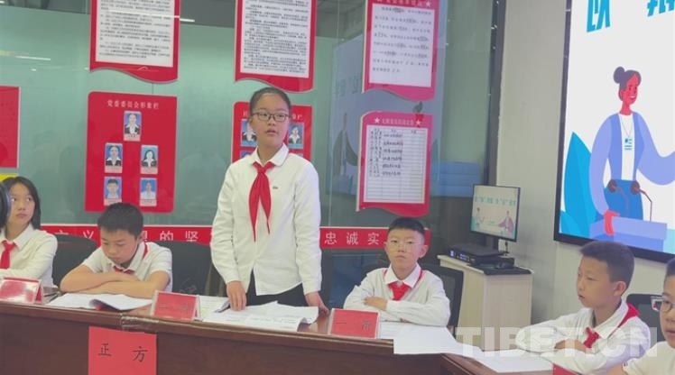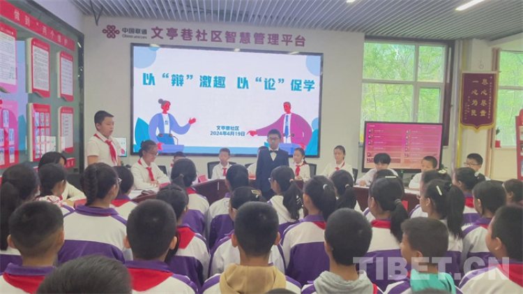 中國(guó)西藏網(wǎng)訊 4月19日,青海省西寧市海湖新區(qū)的文亭巷社區(qū)活動(dòng)室里,傳出稍顯稚嫩卻有力的聲音:“今天我們辯論的題目是:中小學(xué)生應(yīng)不應(yīng)該使用電子產(chǎn)品。下面介紹雙方辯手……”這是文匯小學(xué)五年級(jí)二班的學(xué)生在此開(kāi)展辯論賽。