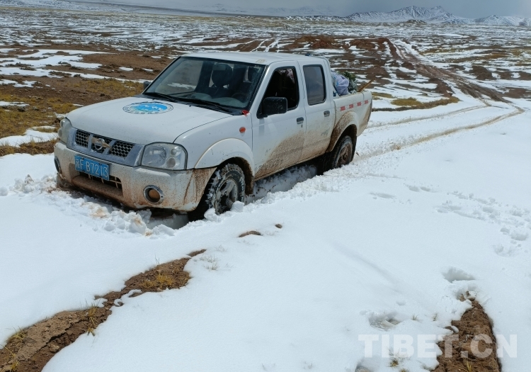圖為巡護途中汽車陷入泥地 圖片由索南米瑪提供
