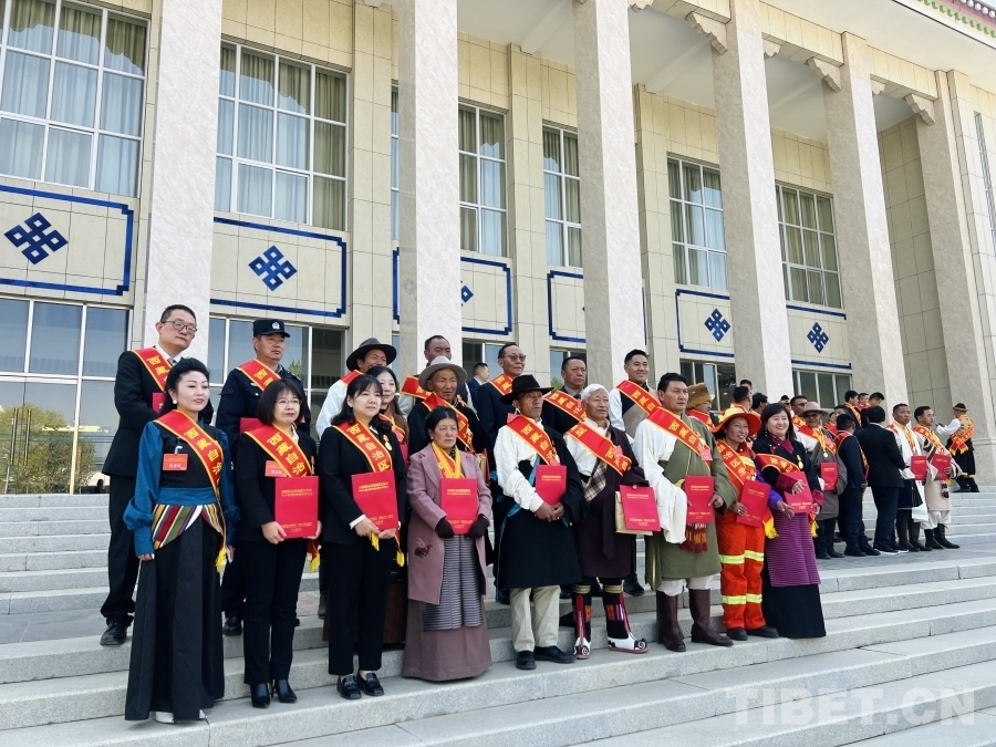 圖為表彰大會結束后獲獎者們合影留念 攝影:德吉卓瑪