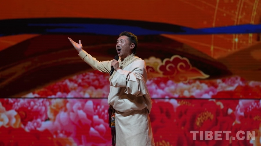 圖為活動(dòng)現(xiàn)場(chǎng)歌手容中爾甲演唱《吉祥謠》 攝影:旦曲