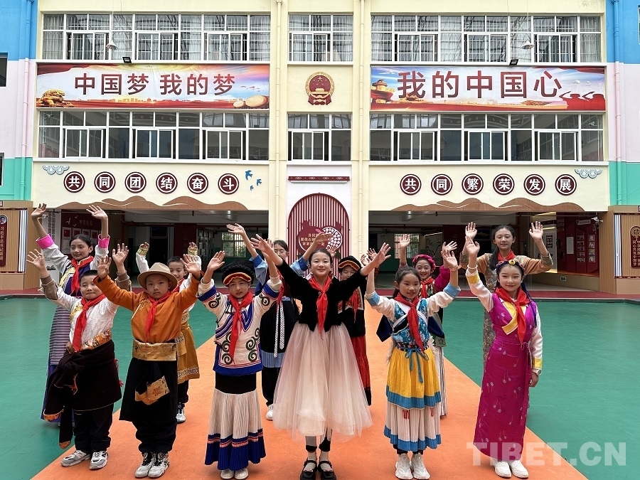圖為香格里拉市民族小學(xué)的孩子們身著民族服飾載歌載舞 攝影:楊眉笑