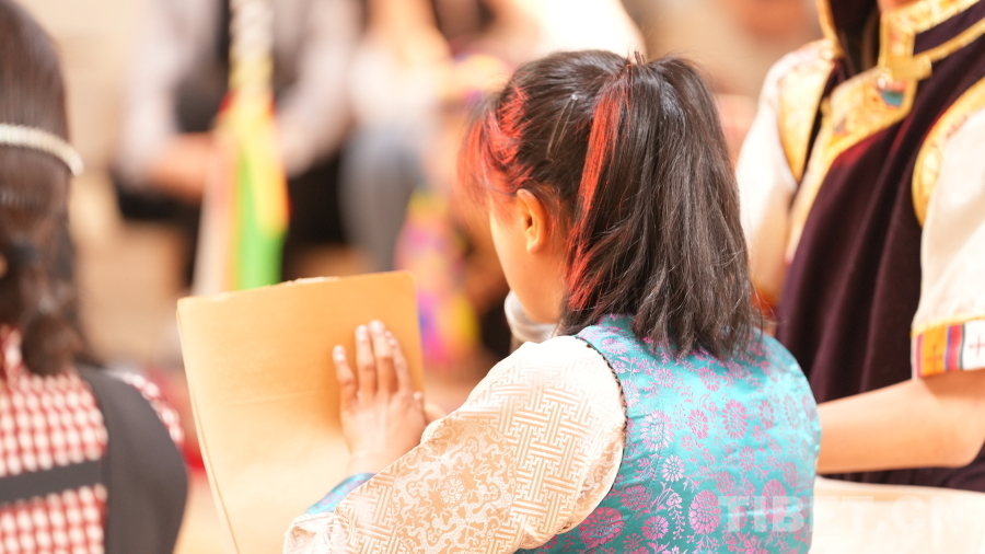 活動現(xiàn)場,拉薩市特殊教育學(xué)校師生向西藏社會主義學(xué)院羅旦博士、中國藏學(xué)出版社代表、北京大方弘文圖書發(fā)行有限公司代表、西藏介觀文化藝術(shù)教育基金會代表敬獻(xiàn)了哈達(dá),贈送了錦旗、畫作,對他們在新書出版中給予的支持和幫助表達(dá)了誠摯的謝意。隨后,拉薩市特殊教育學(xué)校學(xué)生為現(xiàn)場來賓表演了二重唱《愛在陽光下》、詩歌朗誦《光明》、舞蹈《舞動大地》等精彩的節(jié)目,將活動推向高潮,現(xiàn)場觀眾紛紛鼓掌叫好,氣氛十分感人。