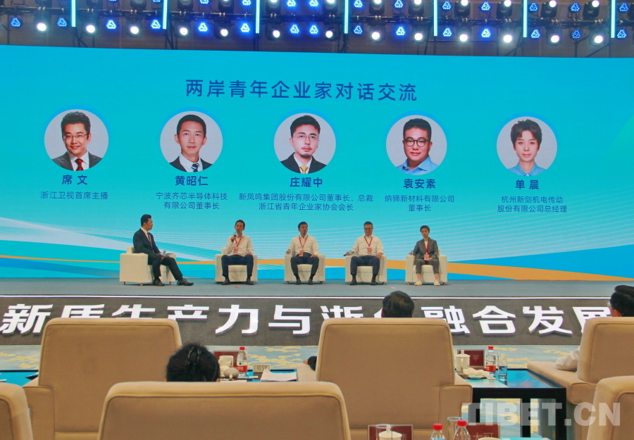 開幕式上,阿里巴巴集團(tuán)董事會(huì)主席蔡崇信,新華三集團(tuán)總裁兼CEO于英濤,富士康工業(yè)互聯(lián)網(wǎng)股份有限公司董事長、總經(jīng)理鄭弘孟,臺(tái)灣工業(yè)總會(huì)副理事長、敏實(shí)控股董事會(huì)主席秦榮華等兩岸企業(yè)家代表圍繞“新質(zhì)生產(chǎn)力與浙臺(tái)融合發(fā)展”進(jìn)行了主旨演講。納獅新材料董事長袁安素、寧波齊芯半導(dǎo)體科技有限公司首席執(zhí)行官黃昭仁、新鳳鳴集團(tuán)董事長莊耀中、杭州新劍機(jī)電傳動(dòng)股份有限公司總經(jīng)理單晨等兩岸青年企業(yè)家圍繞“以科技創(chuàng)新、產(chǎn)業(yè)與人才合作助推加快形成新質(zhì)生產(chǎn)力”開展了對(duì)話交流。