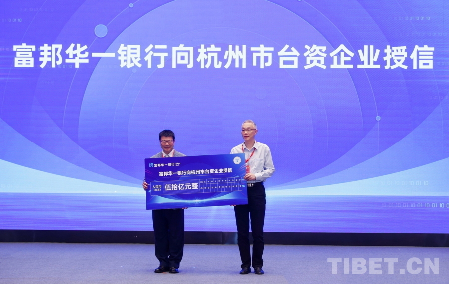 圖為浙江·臺(tái)灣合作周海峽兩岸(杭州)數(shù)字經(jīng)濟(jì)產(chǎn)業(yè)對接會(huì)上富邦華一銀行向杭州臺(tái)資企業(yè)授信50億元 攝影:劉莉