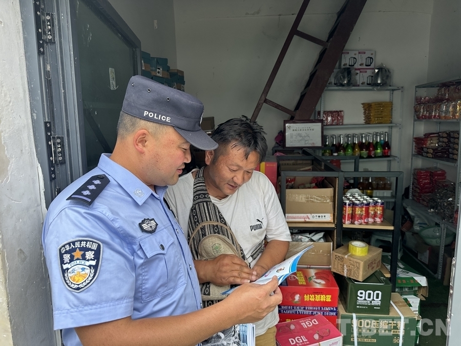 圖為聶拉木出入境邊防檢查站民警向口岸個體戶宣講禁毒知識 攝影:軒紅偉